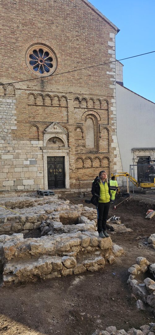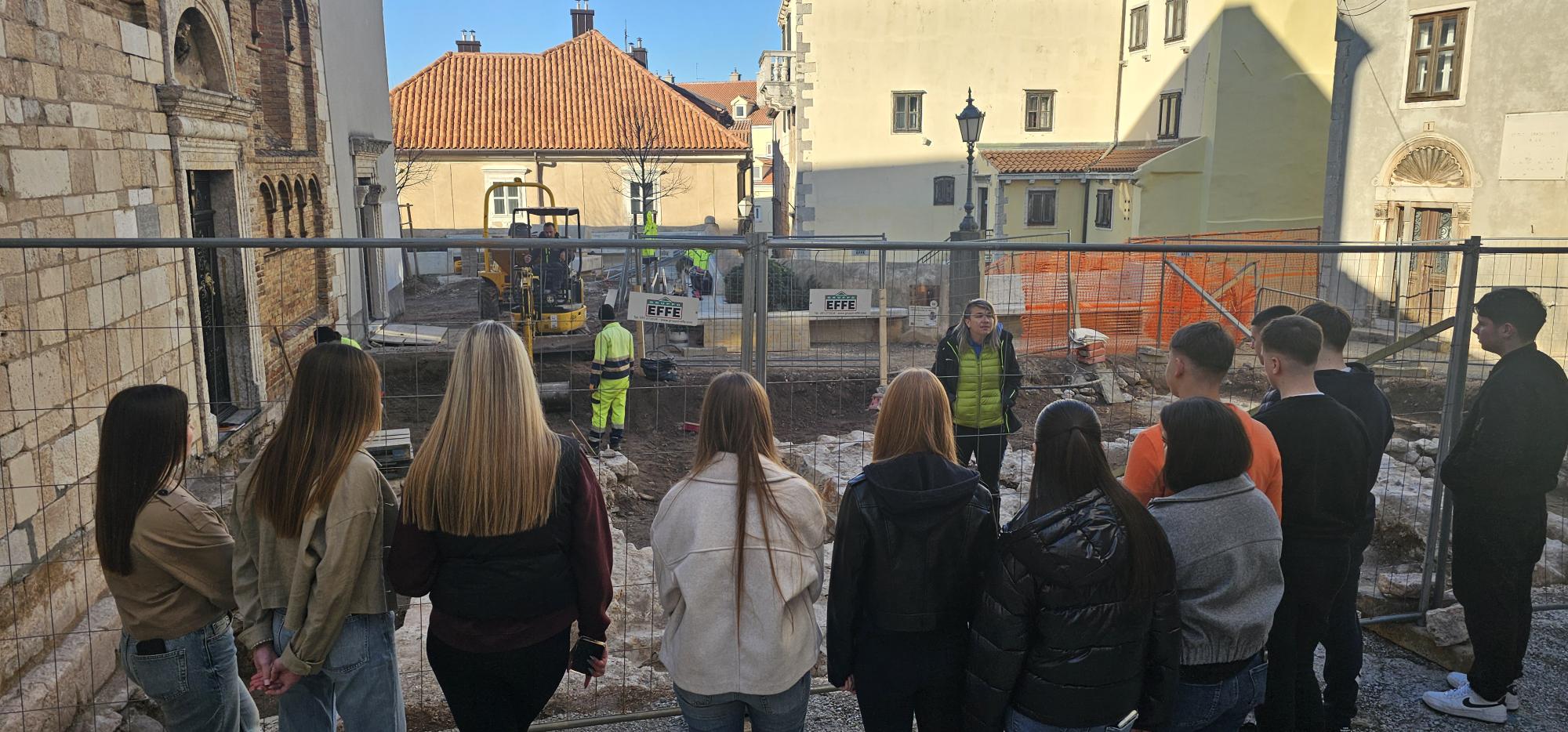 U petak 27. veljače posjetili smo trg Cimiter. U tijeku su arheološki radovi pod budnim okom naše izv. prof. dr. sc. Vedrane Glavaš. Prvi razred opće gimnazije dobio je priliku ući u svijet arheologije, a iscrpno predavanje na arheološkom terenu je potaknulo mnoga pitanja naših učenika.