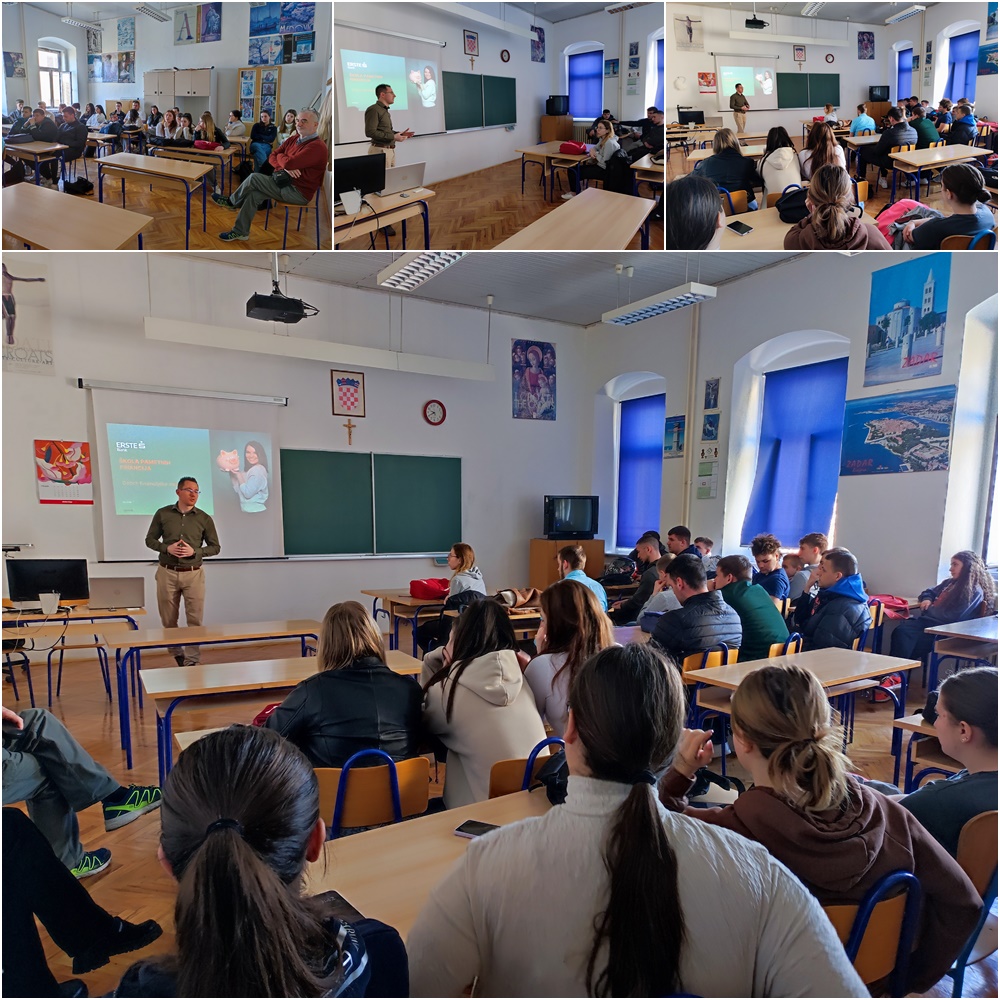 Predavač Duško Rodić, trener Erste banke uputio je učenike kako odgovorno trošiti, pružio informacije o financijskim institucijama i aktivnom korištenju financijskih usluga te uočavanju vlastitog financijskog ponašanja i ponašanja drugih ljudi.