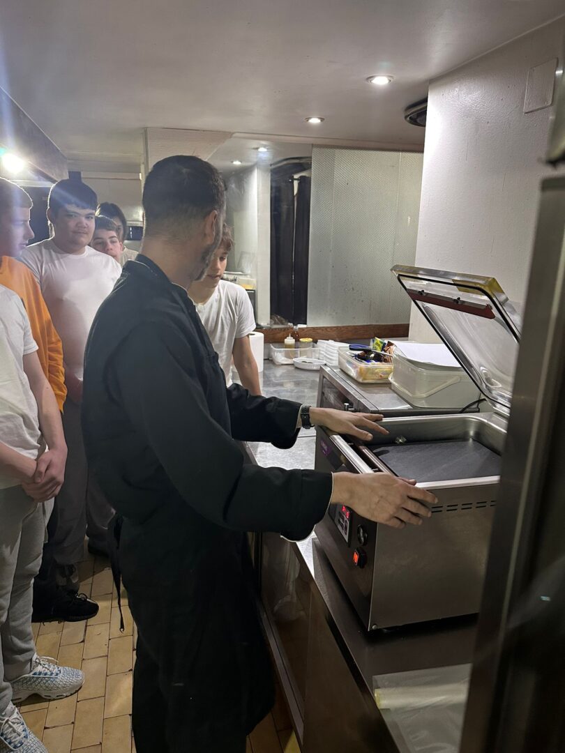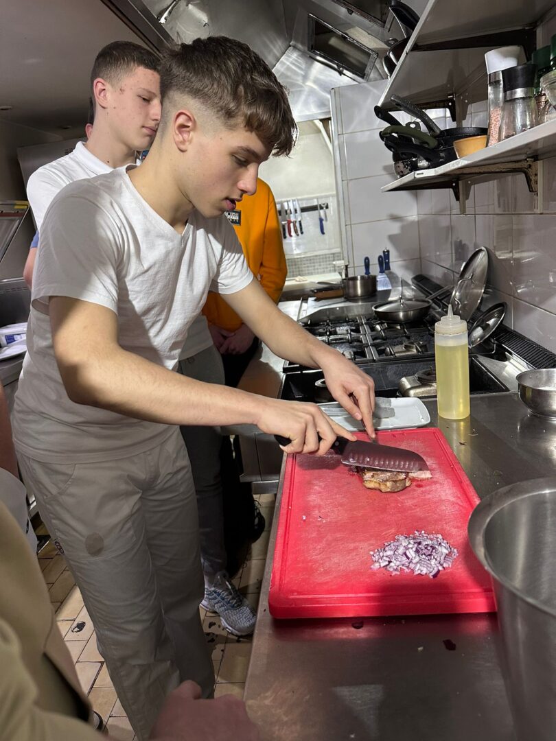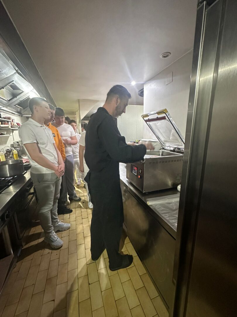 Učenici 1. b razreda, tehničari za ugostiteljstvo bili su u obilasku restorana Uskok u Senju. Restoran koristi profesionalne kuhinjske uređaje pa su učenici naučili kako se koristi konvektomat, sous vide tehniku pripreme namirnica, kemijsku obradu namirnica te obradu namirnica u vakuum komori. Neki malo hrabriji učenici su termičkom obradom sotiranja dogotovljavali meso, a svi su naravno pripremljeno degustirali.